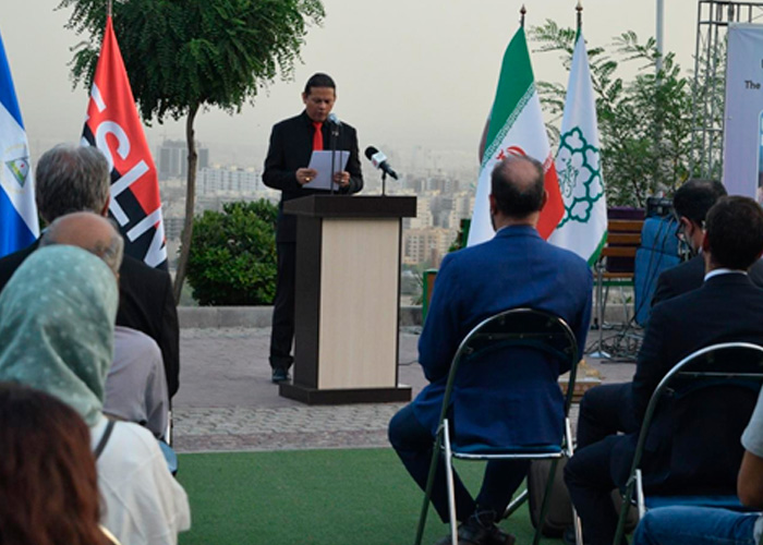 El acto fue en el Parque Parvaz de Teherán, haciendo extensivos los saludos de parte de nuestro Presidente-Comandante Daniel Ortega y la Vicepresidenta, Compañera Rosario Murillo.