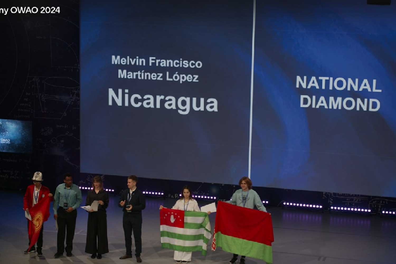 La clausura del evento se realizó la mañana de este domingo 22 de septiembre, resultando nuestro país con Medalla de Bronce como equipo, y además Mención Especial “Diamante” para el Estudiante Melvin Francisco Martínez López, de 16 años de edad, quien actualmente cursa Undécimo Grado, en el Instituto Público Maestro Gabriel del Distrito IV de Managua, Estudiante de Excelencia Académica, destacado en física y matemáticas, miembro de la Federación Nacional de Estudiantes de Secundaria (FES) en su centro de Estudio.