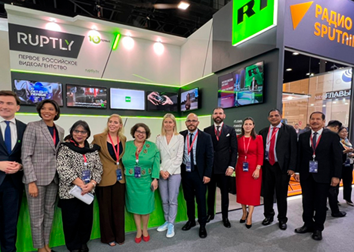 La Delegación también ha realizado un encuentro de trabajo con el Medio ruso RT para continuar fortaleciendo los programas de cooperación e intercambio.