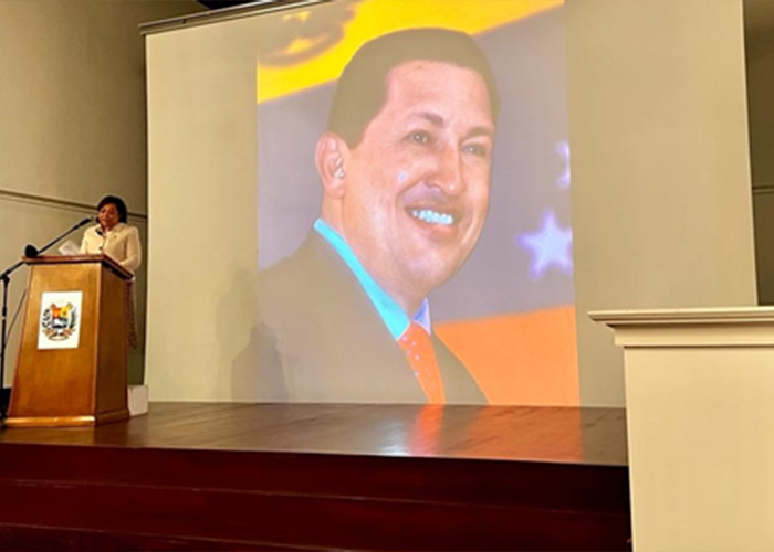 Por su parte, nuestra Embajadora, trasladó el saludo de nuestro Pueblo, de su Presidente Comandante Daniel Ortega y de su Vicepresidenta, Compañera Rosario, Murillo. Recordó el Amor de Nicaragua por Chávez, cuya voz continúa siendo soporte moral de nuestra América y reflexionó sobre el Antiimperialismo del General Sandino, vivo en la Nicaragua Libre y Sandinista, que con su Modelo de Solidaridad, de Prosperidad y Paz, de defensa de su Soberanía y Dignidad y con las victorias revolucionarias de cada día, dice no al imperialismo, no al fascismo, no a la intervención y si a la Vida, a la Libertad, a un mundo mejor.
