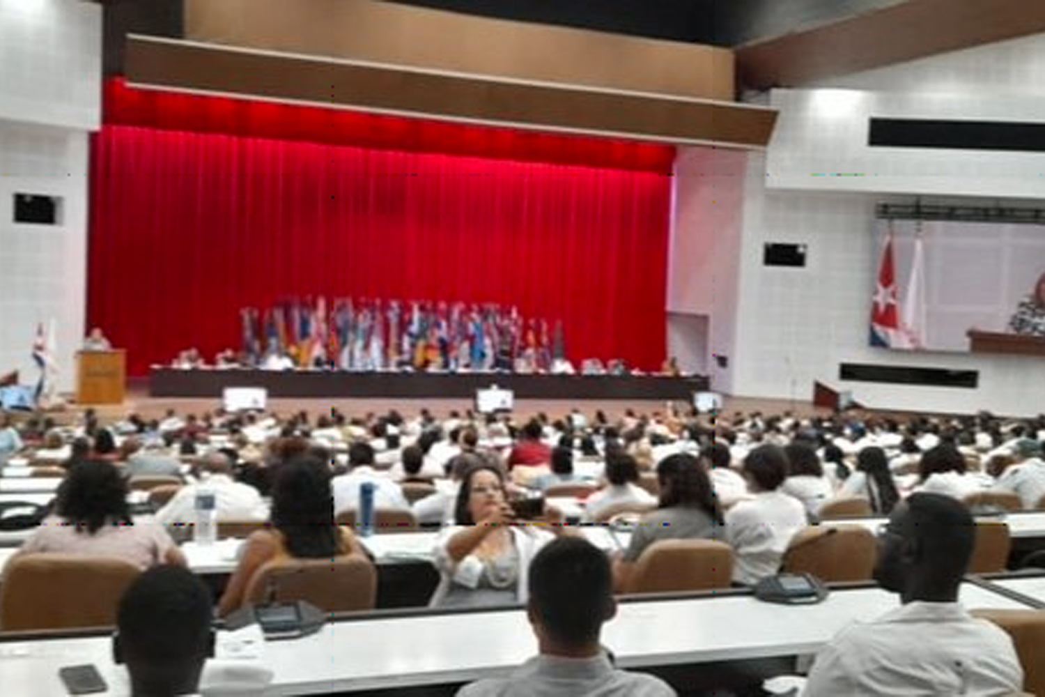 La sesión inaugural, a la que asistió en Repre-sentación del Buen Gobierno de Reconciliación y Unidad Nacional, la Compañera Guisell Morales Echaverry, nuestra Embajadora en Cuba, fue pre-sidida por el Ministro de Salud de Cuba, José Ángel Portal y la Rectora de ELAM, Yoangra Muro y contó con la participación de estudiantes y egresados de más de 80 Países de todas las re-giones del mundo y la asistencia de directivos, trabajadores, representantes de sindicatos, do-centes, egresados, estudiantes e investigadores vinculados directamente con la educación médica universitaria, así como el Vicejefe del Departa-mento de Atención al Sector Social del Comité Central del Partido Comunista Cubano.