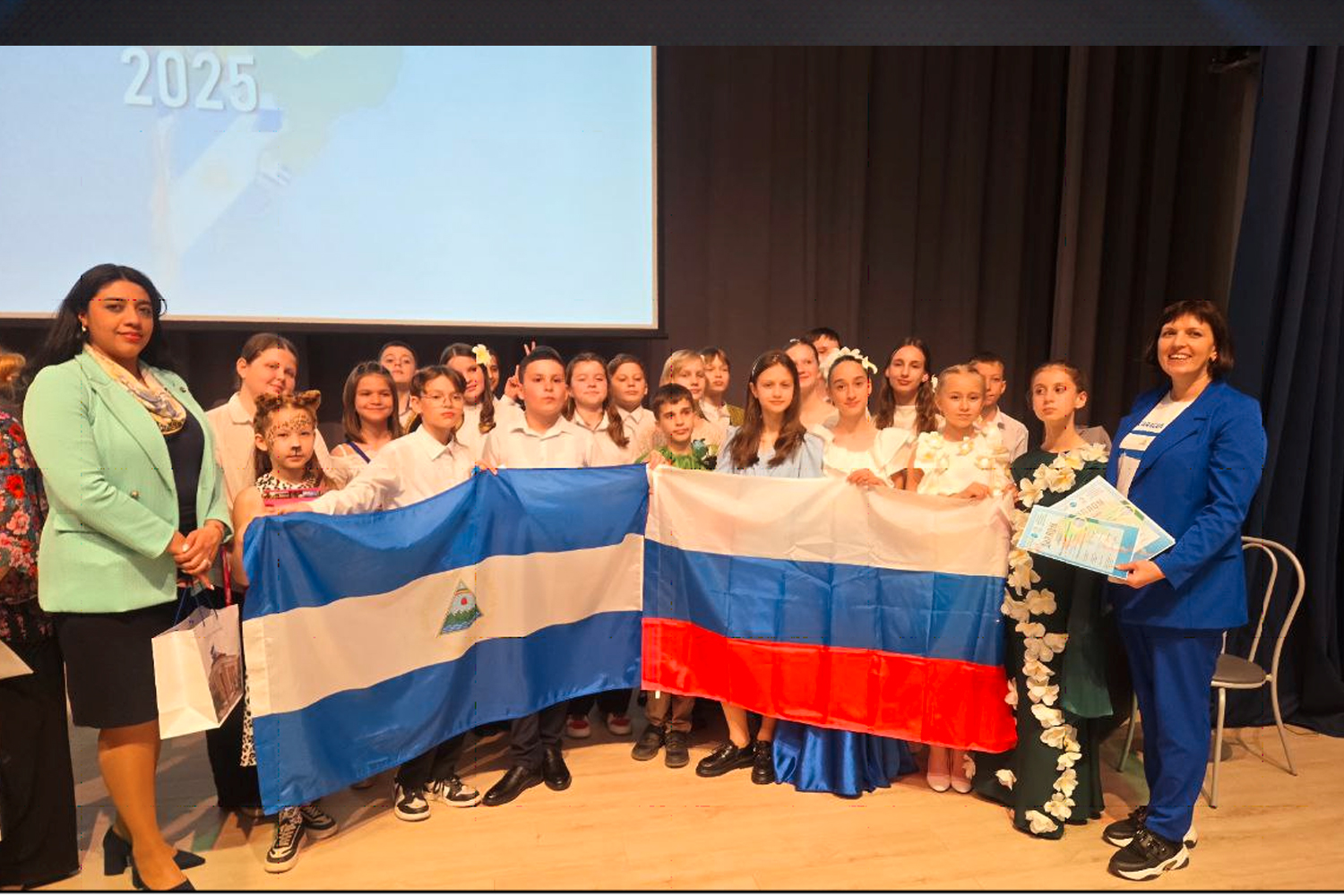 Este año Nicaragua ha sido representada por la Escuela Nº 45 V.I. Sokolov de la ciudad Heroica de Sebastopol, con un elenco de 29 niños quienes han ganado la nominación de la mejor representación audiovisual del País.