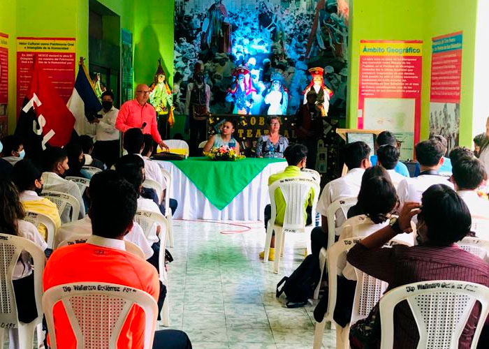El Instituto Nicaragüense de Turismo (INTUR); junto al Instituto Nicaragüense de Cultura (INC), realizaron un conversatorio sobre la historia y origen del Güegüense a estudiantes de Diriamba.