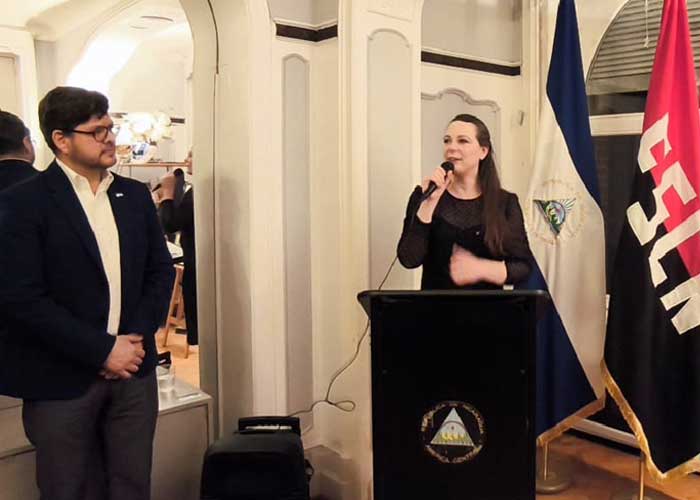 La Compañera belga Ermelinde Malcotte tomó la palabra en nombre del Comité Sandino de Soli-daridad con Nicaragua para ratificar su apoyo a nuestro Gobierno y condenar las acciones inje-rencistas contra nuestro Pueblo y las agre-siones que buscan vulnerar la Soberanía del País.