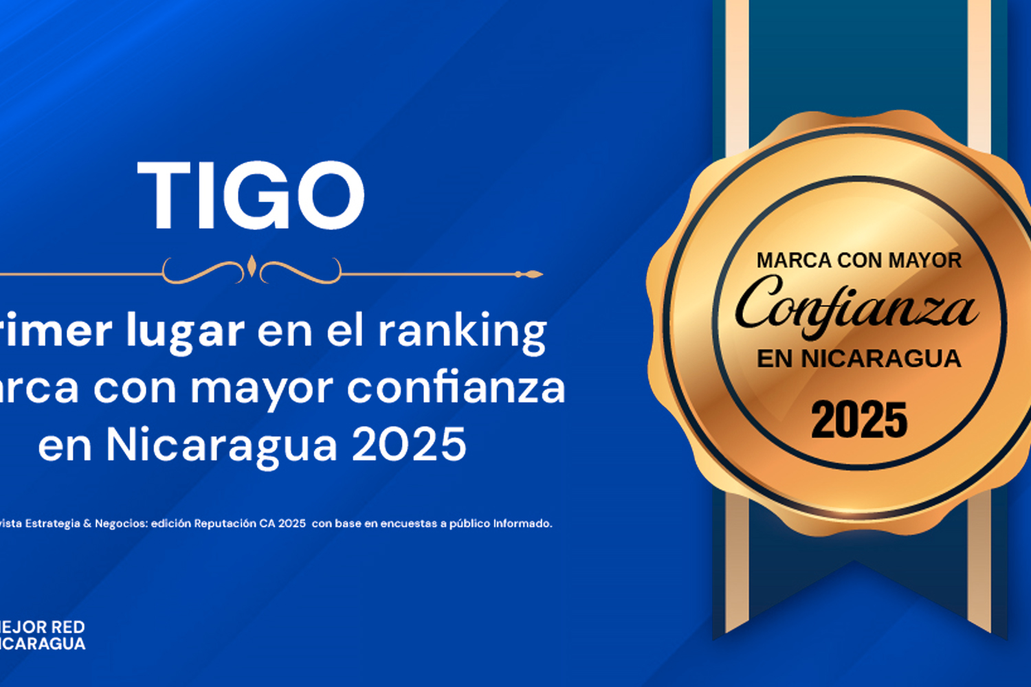 Tigo, líder en servicios de conectividad móvil, fija y televisión se posiciona en el primer lugar como la marca con mayor confianza en Nicaragua dentro del público informado, según el estudio Reputación Centroamérica 2025, de la revista Estrategia & Negocios que analiza la confianza y reputación de las empresas en la región.