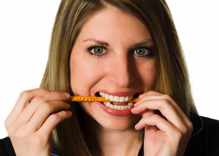 3.- Apretar o rechinar los dientes. Esto se debe a un alto nivel de estrés lo que nos conlleva a apretar los dientes, hasta hacer que rechinen, realizar esta acción de manera seguida, puede conllevar a una fractura de diente.