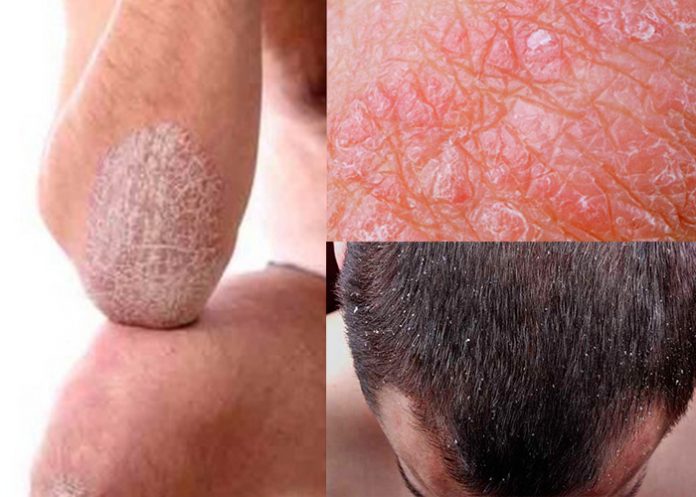 La psoriasis es un problema de la piel que provoca la aparición de manchas rojas y escamosas. Estas manchas, llamadas placas, se forman cuando se acumulan células dérmicas en la superficie de la piel. La psoriasis puede manifestarse en cualquier parte del cuerpo, pero se localiza con más frecuencia en el cuero cabelludo, las rodillas, los codos y el tronco del cuerpo. La psoriasis en una enfermedad crónica, lo que significa que puede aparecer y desaparecer y luego reaparecer. Esta enfermedad puede ser tan sólo molesta, pero también puede ser dolorosa. Además, la psoriasis puede afectar el plano emocional. ¿Por qué?, porque la persona podría sentirse avergonzada o preocupada por su apariencia.