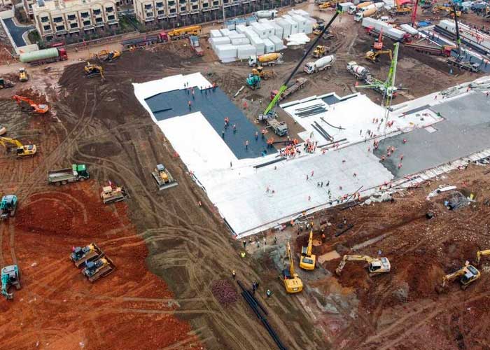 Según la prensa estatal, la construcción del primer hospital se inició el viernes y estará terminada el 3 de febrero, y tendrá un superficie de 25.000 m2.