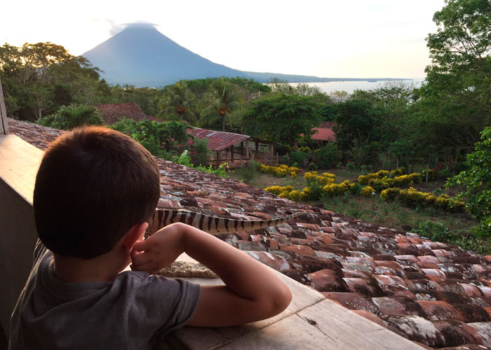 Estuve contenta de que llegamos a Nicaragua durante un fin de semana, cuando las familias salen a disfrutar estas playas. Me encantó ver a los niños enseñarle a mi hijo a jugar en las olas. Terminamos viajando a la Isla de Ometepe, creada por dos volcanes en el Lago de Nicaragua. Mi hijo se impresionó por la vista, pero cuando llegamos, se enamoró de las “vacas de la jungla” y las urracas que jugaron con él durante el desayuno.
