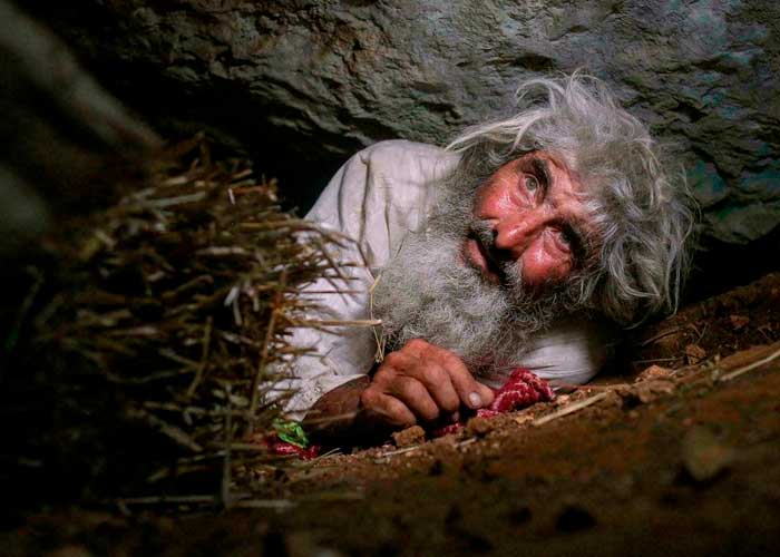 El septuagenario suele alimentarse de hongos y pescado que saca de una quebrada cercana; pero también baja a la ciudad en busca de sobras en los basureros.