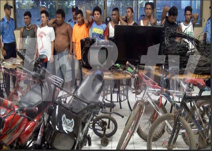 Los Payos, miembros de una peligrosa banda, fueron capturados y presentados por policía del Distrito X, esta agrupación delictiva operaba en varias zonas de Ciudad Sandino. Entre lo ocupado se encuentran electrodomésticos, dinero, armas hechizas motocicletas, prendas de plata, cuchillos, armas que se ocupaban para intimidar a las víctimas y despojarlos de sus pertenencias.