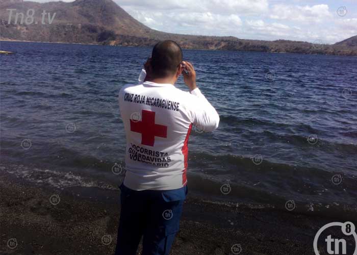 Miembros de la Cruz Roja Nicaragüense realizan la búsqueda de una supuesta persona que se ahogó en horas del medio día del domingo en Xiloá. La supuesta víctima es identificada como Ricardo Pineda de 42 años.