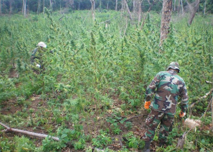 Elementos de seguridad localizaron en el lugar 48 parcelas con plantíos de marihuana con un potencial de 294 toneladas, además de 40 kilogramos de semillas y 550 de cannabis picado.