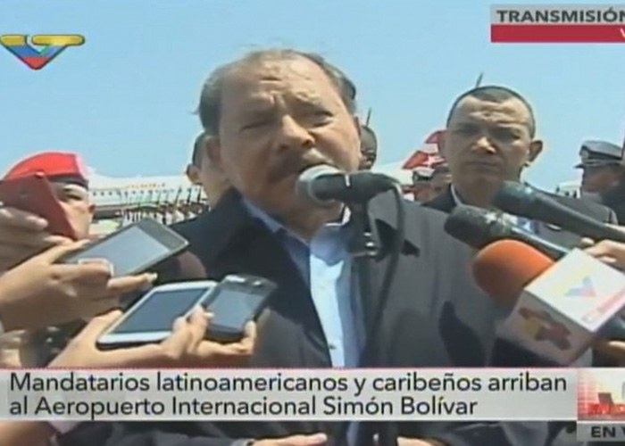 En su breve participación ante medios venezolanos en el aeropuerto internacional Simón Bolívar, el Pdte. Daniel Ortega enfatizó que “Venezuela es un pueblo que está dando la batalla en medio de enormes desafíos”.