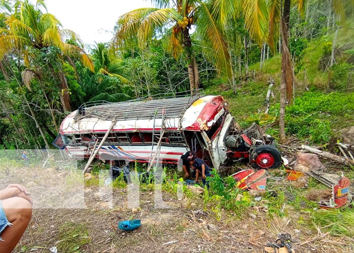 Transporte manzanares que cubre la ruta Shasa, Greyton y Rosita en el Caribe Norte es la unidad que sufrió el accidente esta mañana, dejando hasta el momento a 30 personas heridas y un fallecido.