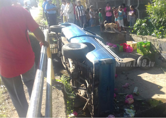 Managua: Camioneta termina en cauce al esquivar vehículo