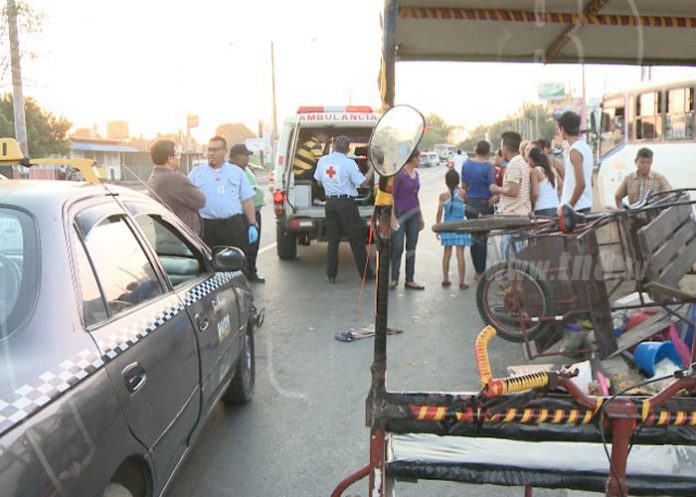 A primera hora de este martes hubo un accidente de los semáforos del Mercado Mayoreo una cuadra al oeste, Distrito VI de Managua, dejando como resultado a una persona lesionada después de que impactara un taxi con una caponera que se dirigía al centro de compras.