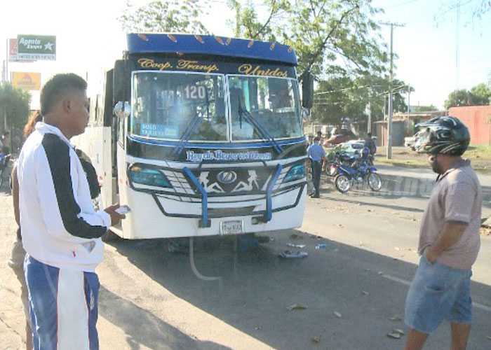 Bajo la Ruta 120 quedó la mañana del jueves la motocicleta en la que circulaban dos personas, quienes se trasladaban de abajo hacia arriba sobre la pista de Villa Reconciliación, en Managua.