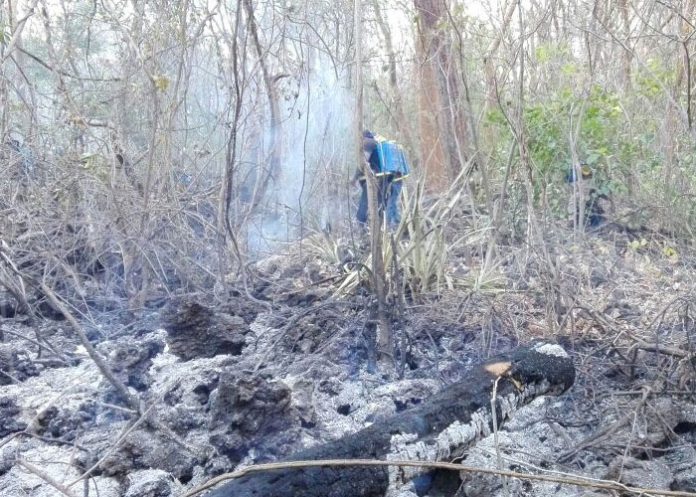A los esfuerzos por controlar el incendio forestal, de tipo subterráneo, se unieron miembros de las Brigadas Comunitarias que lucha por preservar el medio ambiente, apoyando a estas instituciones conscientes de que es una responsabilidad compartida.