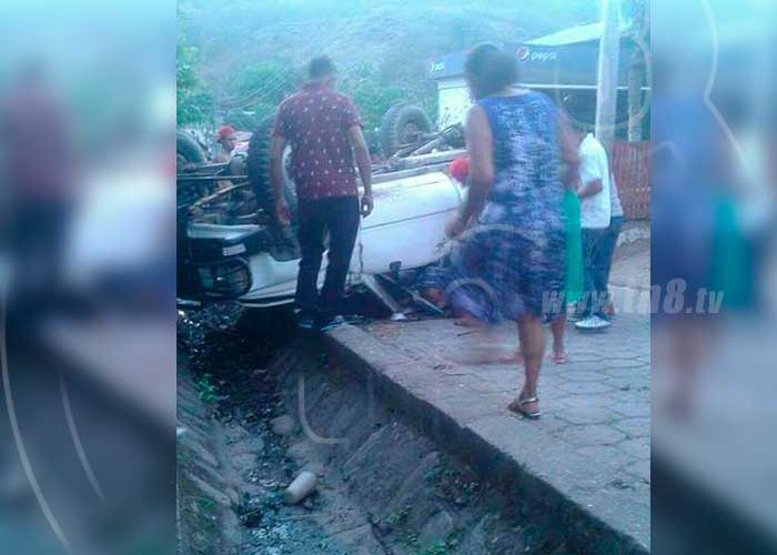 Se trata de un vuelco registrado a eso de las 6:11 de la noche en el que se vio involucrada una Camioneta con placa de Jinotega JI-2405, en la que viajaban dos personas del sexo masculino. El fallecido respondía al nombre de Pablo Antonio Romero Vásquez, de 24 añosy viajaba como acompañante en el vehículo.