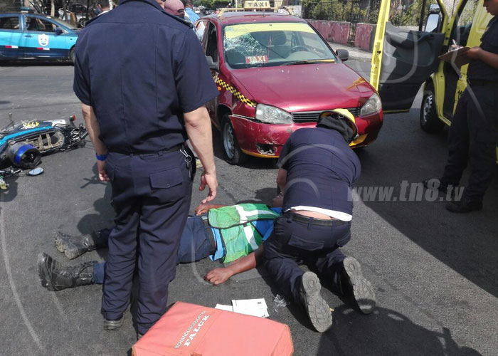 El agente viajaba en su motocicleta en direccion norte a sur en su preferencia en el sector del barrio Bóer, en Managua, y Jordy, cadete del taxi, tomó poca importancia a la clara señal de Alto que indicaba la preferencia del agente.