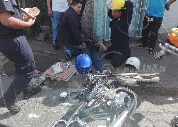 Lesther Francisco Barberena, conductor del vehículo de dos ruedas resultó con excoriaciones en su brazo a causa de la fricción con el pavimento, mientras su esposa identificada con el nombre de Carmen Membreño de 44 años con una posible fractura en uno de sus pies, más golpes y excoriaciones en varias partes de su cuerpo. Ambos fueron trasladados a un centro asistencial por miembros de la Dirección General de Bomberos.