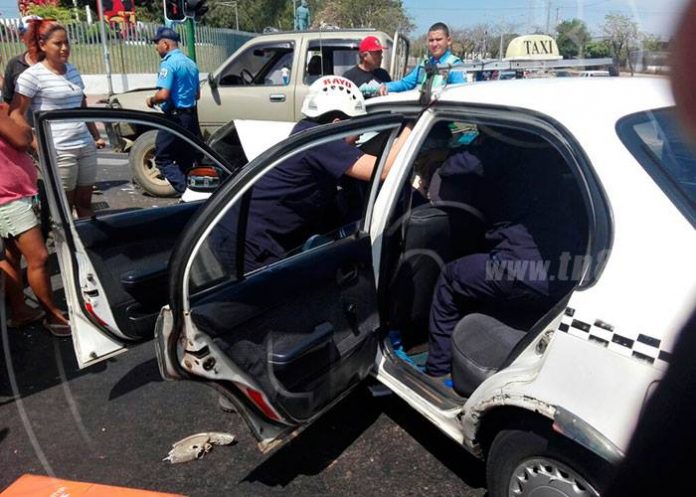 Un fuerte encontronazo se registró, en la intercepción a los semáforos de la Asamblea Nacional en el Distrito II de Managua, Nicaragua en donde un taxista se llevo la peor parte.