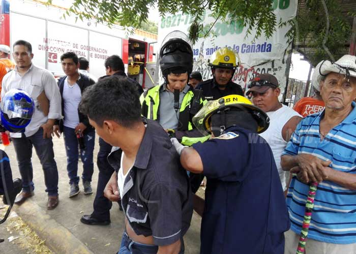 Al momento del incidente inmediatamente miembros de la Dirección General de Bomberos de Nicaragua se presentaron al lugar y brindaron asistencia médica al joven, quien presentaba trauma en el ojo del pie izquierdo y fuertes golpes en la parte de su espalda, por lo cual fue trasladado al Hospital Alemán Nicaragüense donde sería valorado por médicos de turno, quienes serán los encargados de ver si presenta lesiones internas.