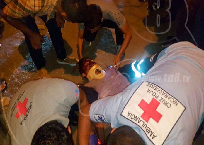 Enyel Reyes de 23 años es el que se llevó la peor parte en este accidente y es quien conducía la motocicleta con sentido de Sur a norte y quien según Erlis Hernandez, técnico en urgencias médicas de la Cruz Roja esteliana, presentaba un trauma facial, supuestamente no usaba el casco de protección al momento del suceso.