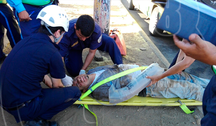 El lesionado se encontraba bastante sucio por la tierra, donde no se descarta la posibilidad de que el im pacto pudiera haber sido de gran magnitud, además este aparentemente presentaba una fractura en el brazo derecho producto del accidente, por lo cual tuvo que ser necesaria la presencia de miembros de la Dirección General de Bomberos, quienes de inmediato le brindaron los servicios pre hospitalarios, para luego trasladarlo hacia un centro asistencial.