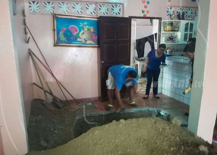 El geólogo William Martínez Bermúdez, representante del INETER en Nicaragua, se hizo presente este lunes a la casa de habitación de Doña Silvia García en el barrio San Sebastián, en Managua, lugar que el pasado jueves santo se escuchaban retumbos en el área donde está ubicado el comedor, lo cual alarmó a la familia y habitantes de la zona cuando se levantó esa parte de la casa arrancando la cerámica.