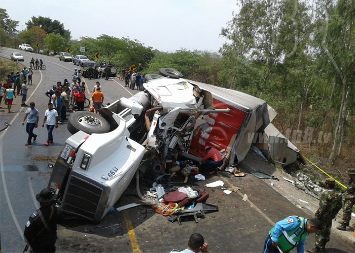 El suceso ocurre según testigos cuando un furgón con placa G 666BMX viajara a alta velocidad y quiso adelantar un vehículo, pero por el peso de la carga que llevaba no pudo enderezarse adecuadamente y perdió el control, volcándose e impactando el contenedor con una camioneta del Ejército de Nicaragua, al igual que impactar de frente con otro furgón que era conducido por el ciudadano Henry García, el cual se dirigía hacia la frontera.