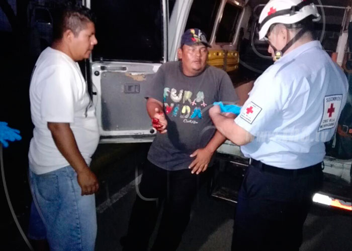 Paramédicos de Cruz Roja nicaragüense le brindaron la asistencia pre hospitalaria al lesionado quien dijo se gana la vida como ayudante de camión de descargue.