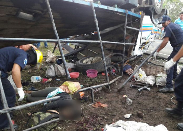 Un trágico accidente de tránsito se dio esta mañana de martes en el kilómetro 104 de la Carretera León-Malpaisillo, en el occidente de Nicaragua, en donde el vuelco de un camión dejó cuatro personas fallecidas: dos mujeres y dos varones.