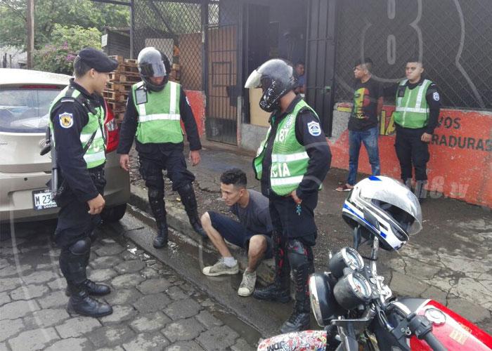 La brigada especial de la Policía Nacional, Los Dantos, arrestaron a dos antisociales esta tarde de martes, a quienes le incautaron unas 25 bolsitas de cocaína, además les ocuparon un revólver y la motocicleta en que se transportaban. El hecho se registró del colegio Benjamín Zeledón, una cuadra al sur, barrio El Recreo, en Managua.