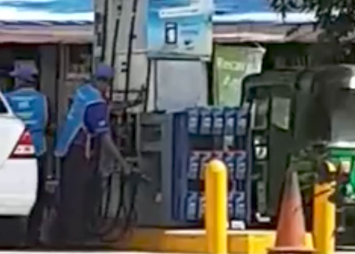 En los videos que ya circulan en todas las redes sociales en el país se observa como uno de los bomberos en la estación de servicio marca el tablero y con mucha discreción llena un recipiente que esta a su lado y después de haber sacado lo suficiente dirige la boquilla de la manguera al tanque del vehículo del cliente.