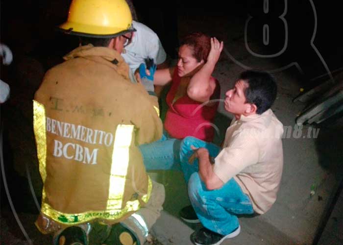 Silvia Molina, Eliza Miranda y Ender Tórrez presentaban trauma cervical, trauma lumbar más golpes y escoriaciones en diversas partes del cuerpo estos tres viajaban en el carro blanco, supuestamente bajo los efectos del licor, pues se encontraron en el asiento trasero latas de cerveza, todos recibieron los primeros auxilios por parte de paramédicos del Benemérito Cuerpo de Bomberos quienes los remitieron en dos unidades al Lenín Fonseca.