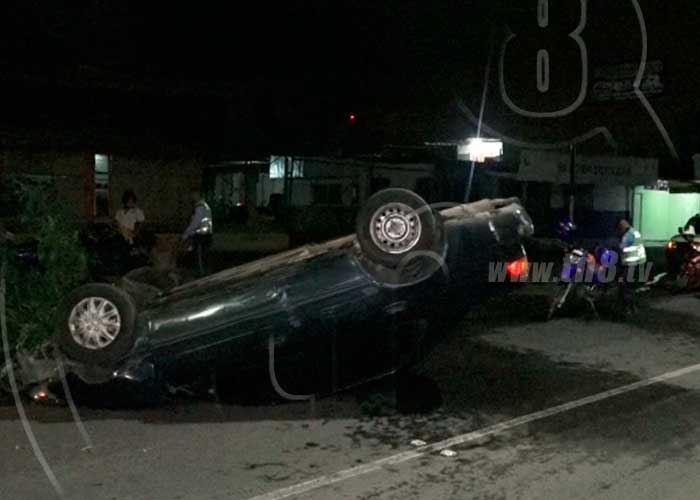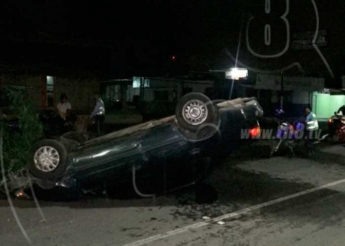 Rebeca Sequeira de 38 años, milagrosamente resultó sin un solo rasguño después que el vehículo, Toyota Corola, color negro que conducía terminara volcado al perder el control supuestamente al circular a exceso de velocidad y bajo los efectos del licor, de ENABAS central, una cuadra abajo, carretera norte.