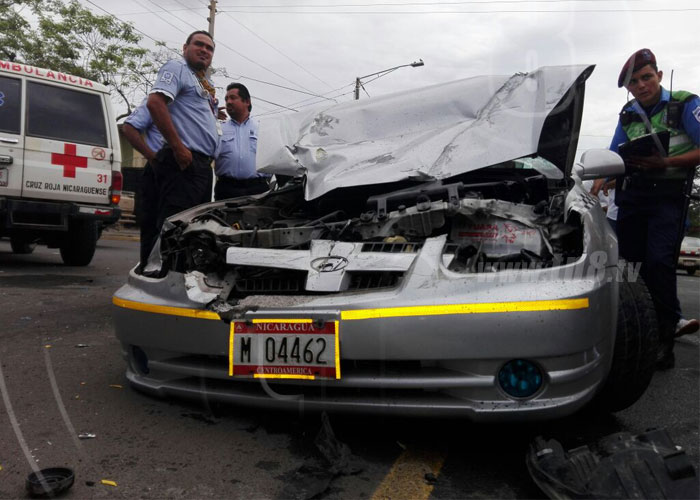 Minutos de pánico vivieron los pasajeros de un vehículo taxi esta mañana de lunes por un accidente de tránsito, al momento en que el conductor de un camión no respetara una señal de Alto, que se encuentra ubicada en la intersección de los semáforos de la Asamblea Nacional, dos cuadras abajo, en Managua.
