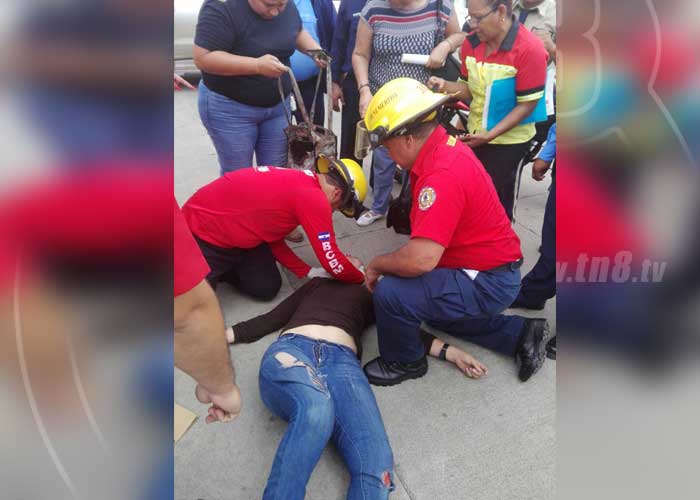 A pocos minutos de lo ocurrido, miembros del Benemérito Cuerpo de Bomberos se presentaron al lugar para brindar asistencia médica a la lesionada, quien presentaba un politraumatismo generalizado y una posible fractura en su pierna izquierda, ya que el mayor golpe fue en ese extremo, por lo que la joven fue inmediatamente trasladada al Hospital Escuela Lenín Fonseca, donde sería valorada por médicos de turno.