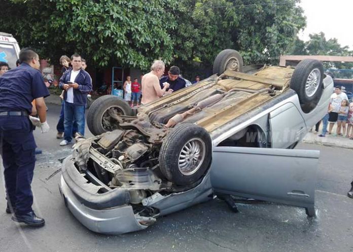El festejo del día de las madres terminó mal para Edgar Medina Rizo de 71 años de edad, al resultar lesionado junto a su mamá, doña Estela Rizo Arostegui de 91 años. Al volcarse el vehículo Yaris, color plateado, placas M 127-416 en el que circulaban por el sector del Cemeterio Periférico en Managua.