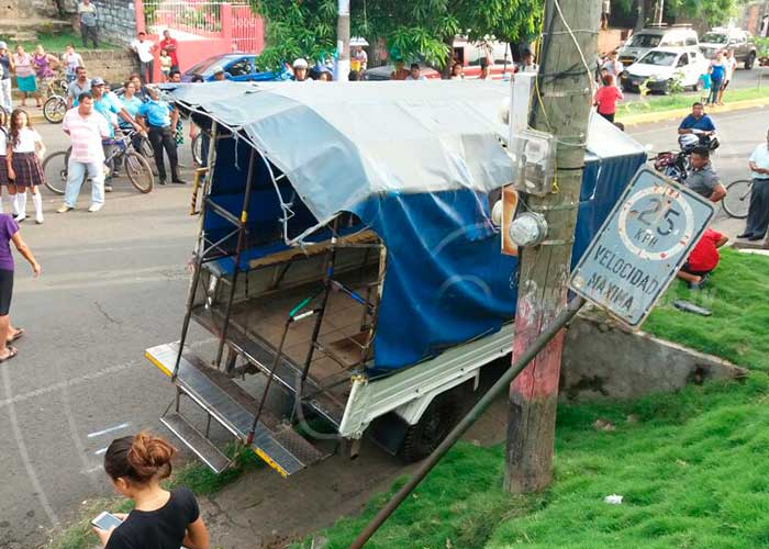 Una camioneta rutera de transporte público colectivo quedó casi volcada en la cuneta con más de 40 usuarios que se dirigían a su destino, en el accidente resultaron seis personas lesionadas, entre ellos, dos niños, una mujer embarazada, una señora con dos de sus dedos cercenados y dos personas que resultaron con daños en la columna y brazos, el hecho ocurrió en el lugar conocido como la Barranca, en el barrio de Sutiaba, en León.