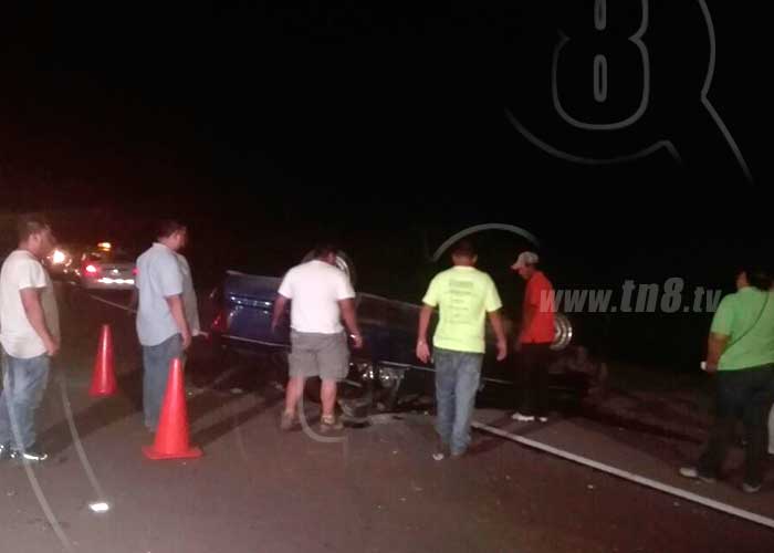 Según Domingo Obregón de 28 años este circulaba de Managua hacia su hogar en Bello Amanecer, ubicado en Ciudad Sandino, después de una noche de trabajo, cuando sobre la pista se encontraba otro auto en mal estado estacionado, posiblemente este también se había volcado con su conductor dentro horas antes, y partes del automotor se encontraba esparcido sobre la carretera, fueron los fragmentos que provocaron que Domingo perdiera el control dando varias vueltas sobre el pavimento antes de detenerse en el carril contrario.