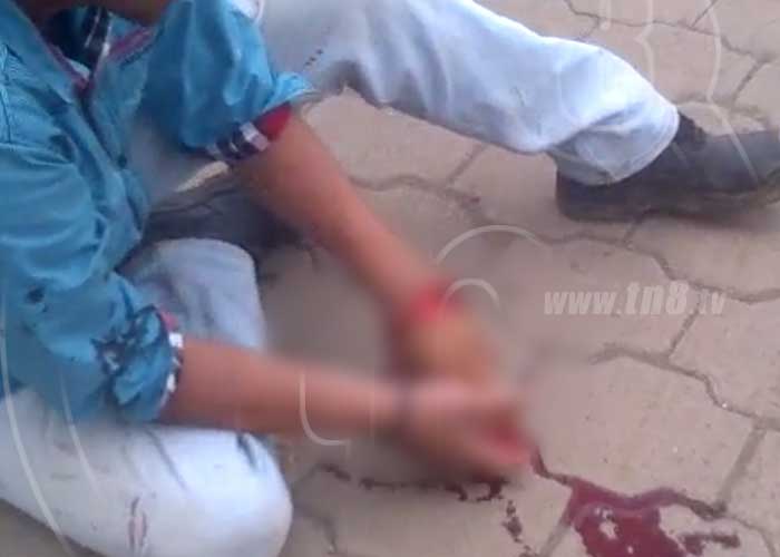 En el video se ve a un hombre con un machete en la mano, mientras el otro tirado en el pavimento pareciera que no da fe a lo que sus ojos le muestran, su muñeca casi despedazada con los dedos casi cercenados y la sangre derramándose a borbollones.