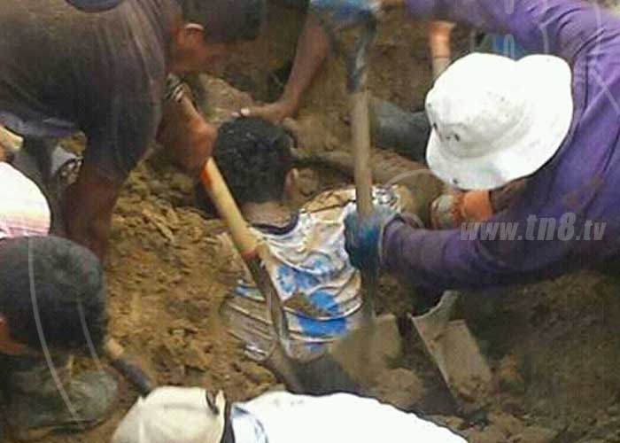 Un obrero de la construcción murió asfixiado al ser sepultado por la tierra mojada de un barranco que se derrumbó, mientras la víctima trabajaba en un sector de la frontera, en Las Manos, Nueva Segovia.
