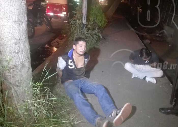 Por medio de un buen operativo de los agentes de fuerzas especiales de la Policía Nacional, Dantos, se logró la captura de dos sujetos en uno de los sectores del barrio La Fuente, frente al billar Changuelos, en Managua.