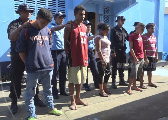 Cinco sujetos, entre ellos una mujer, fueron presentados este martes en la delegación de la Policía Nacional de Chinandega, por verse implicados en los delitos de robo con fuerza e intimidación.