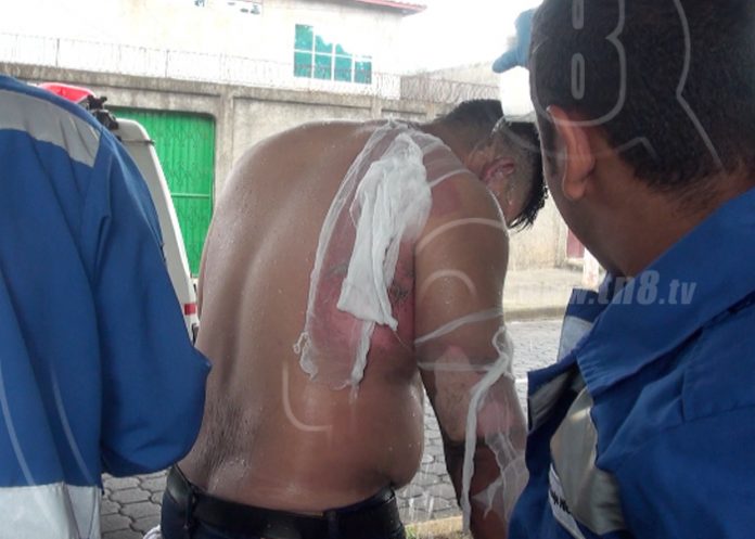 Al lugar se hicieron presentes miembros de la Cruz Roja Nicaragüense, quienes continuaron con el proceso de rociar agua sobre la piel quemada y con gasas húmedas tapaban las heridas que había dejado el incidente, luego lo trasladaron al Hospital Escuela Lenín Fonseca, donde sería valorado por médicos de turno, ya que sus quemaduras son bastante considerables.