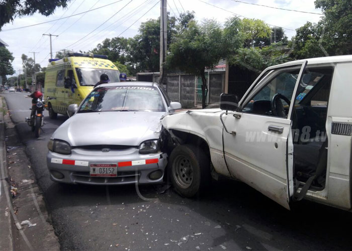 El choque entre una camioneta particular y un vehículo taxi dejó fuertes golpes a un joven, hecho ocurrido en el sector de los semáforos de El Redentor, en Managua.