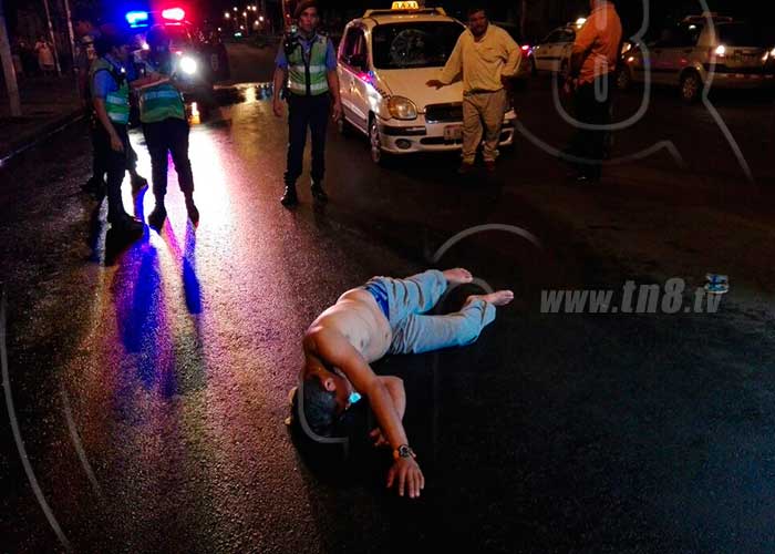 El accidente se registro la noche del domingo, de la rotonda Cristo Rey, una cuadra al lago. Según el taxista trato lo mas que pudo evitar impactarlo, sin embargo fue imposible, supuestamente el lesionado se llego a encontrar con el automotor.